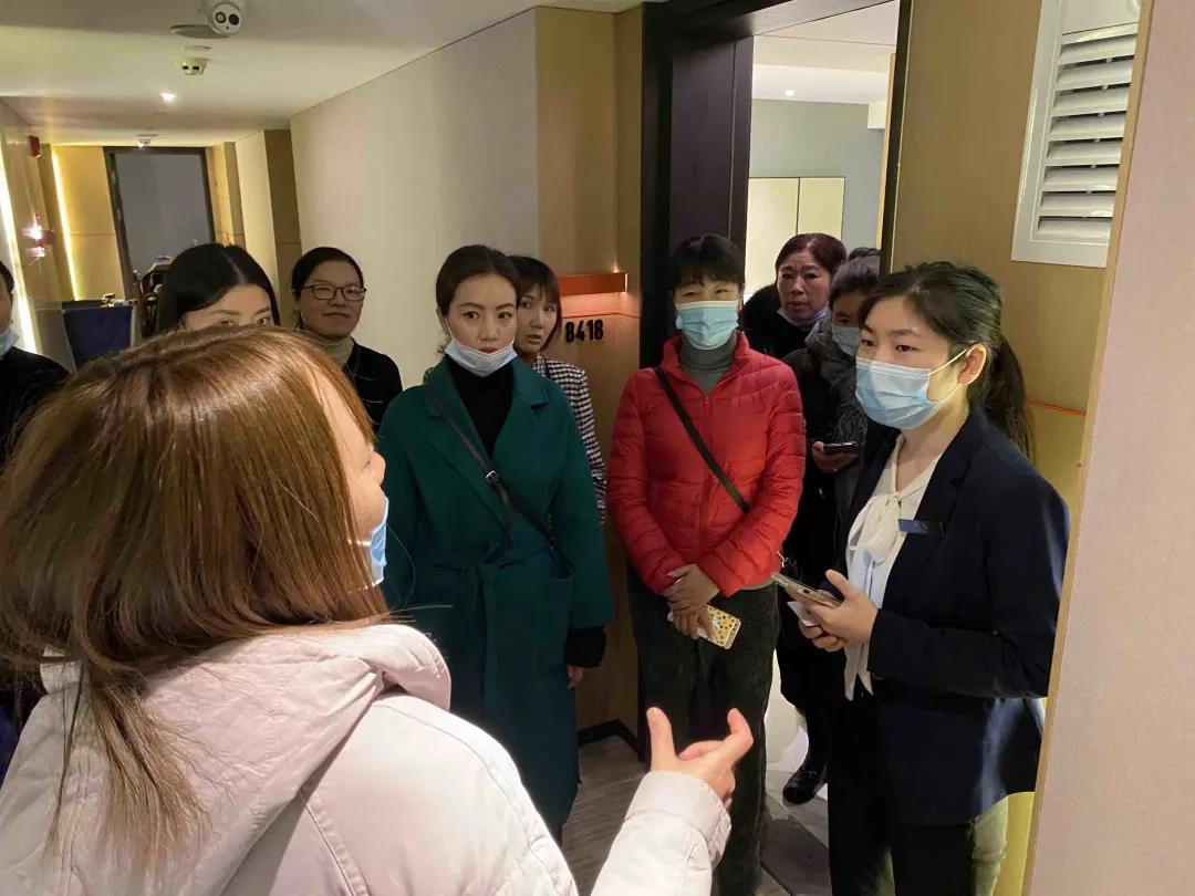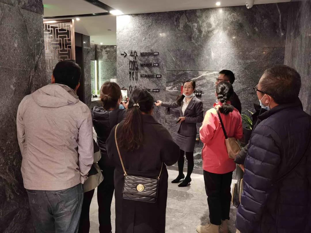 ▲亚朵S酒店现长文女士向西部牧场项目员工讲解参观流程