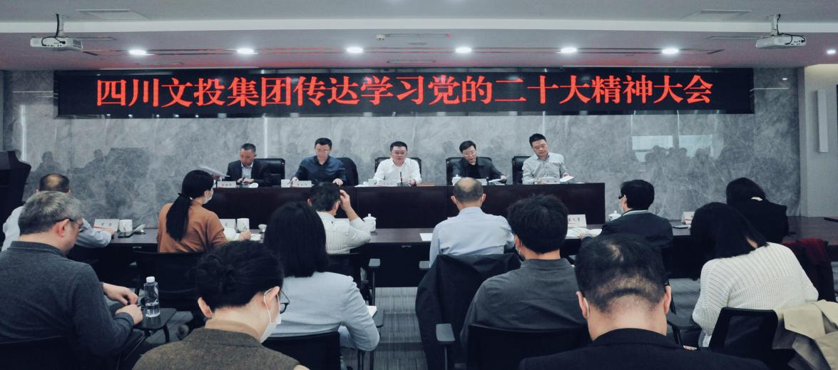 会议强调,认真学习宣传贯彻党的二十大精神,是当前和今后一个时期的首要政治任务。集团上下要按照中央、省委部署要求,迅速掀起学习宣传贯彻党的二十大精神热潮。一要精心组织、周密安排。通过党委理论学习中心组学习、专题学习和支部学习等学习研讨活动,采取邀请党建专家讲、集团党委成员深入基层一线讲、支部“三会一课”等多种方式,研学原文精髓,领会核心要义,用以指导实践。二要深学细悟、学懂弄通。党委成员要带头先学一步、深学一层,发挥示范引领作用,各部门各单位要组织全面学、深入学、系统学,充分认识党的二十大的重大意义和取得的主要成果,深刻把握党的二十大主题,深刻把握过去5年工作和新时代10年伟大变革的重大意义,深刻把握习近平新时代中国特色社会主义思想的世界观和方法论,深刻把握以中国式现代化推进中华民族伟大复兴的使命任务,深刻把握以伟大自我革命引领伟大社会革命的重要要求,深刻把握团结奋斗的时代要求。三要落地生根、见行见效。党的二十大报告对推进文化自信自强、铸就社会主义文化新辉煌作出部署,强调要繁荣发展文化事业和文化产业、实施重大文化产业项目带动战略,为集团的改革发展指明了前进方向,提供了根本遵循。作为省属国有文化投资企业,我们要自觉把思想统一到党的二十大精神上来,把力量凝聚到实现党的二十大确定的各项任务上来,按照省委部署要求,自觉肩负起促进四川文化产业创新发展,加快新时代文化强省建设的职责使命,在新时代新征程上勇于担当、主动作为,取得新的更大成绩、作出新的更大贡献。